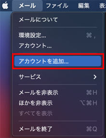 1.上部の[ メール ]タブの中の『 アカウントを追加 』をクリックします。
