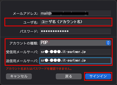 | 送信用メール サーバー | 初期ドメイン(※) (sr●-●●●.it-partner.jp or mail.~) |