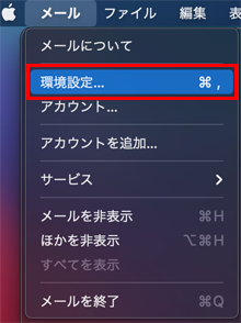 1.上部の[メール]タブの中の『環境設定』または『設定』をクリックします