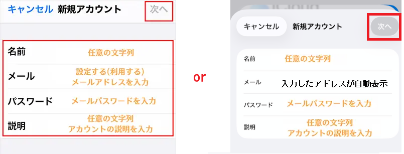 メール: 電子メールアドレス (@の後ろも全て入力)