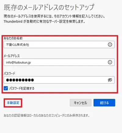 2-2.自動検出されたアカウント(メールアドレス)の情報を確認します。